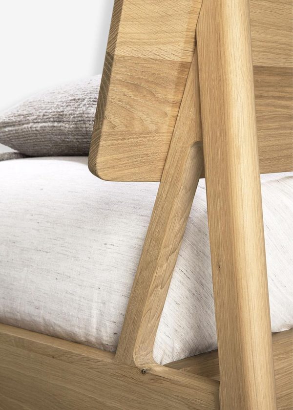 Pour le lit Air, le designer Alain van Havre mise sur le dialogue entre modernité et intemporalité. Avec sa silhouette au look épuré, ce lit en chêne massif sera la pièce maîtresse de votre espace nuit. Dans un souci de beauté authentique, le bois sélectionné au sein de forêts européennes peut contenir des noeuds et des fissures naturelles qui font de chaque meuble une pièce unique. Disponible en plusieurs dimensions.