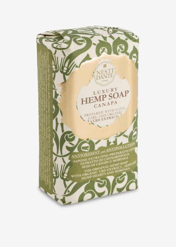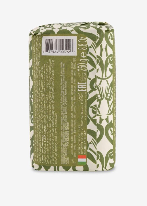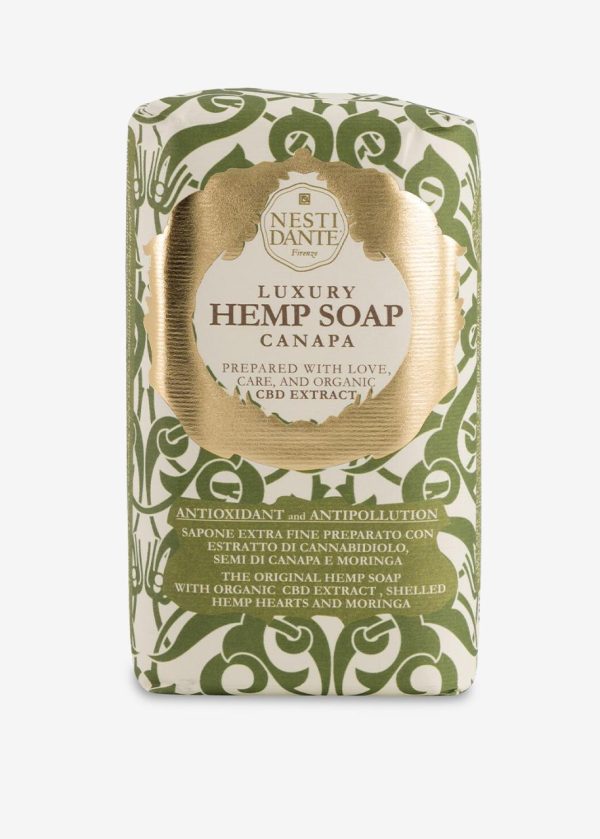 Savon chanvre à bas d’extrait de CBD organique, de chanvre végétal et de moringa, renforce naturellement la protection contre la polution urbaine et purifie la peau, 250gr, Fabriqué à Florence, Italie, selon les méthodes artisanales de saponification par Nesti Dante, 100 % à base d’ingrédients naturels et végétales, testé dermatologiquement, non testé sur les animaux.