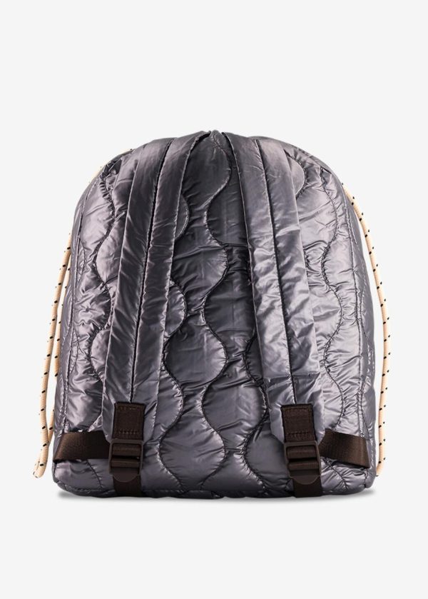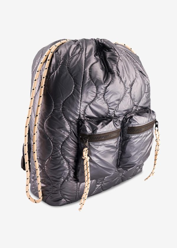 Laissez-nous vous présenter notre backpack. Un sac-à-dos parfait pour transporter tous vos essentiels avec style. On craque complètement pour l’alliance entre le polyamide matelassé métallisé et les cordons de montagne. Le mix parfait entre style et outdoor. Sa coupe et son design sont pensés pour qu’il soit le plus pratique au quotidien : cordon de serrage pour l’ouvrir et le fermer en toute simplicité et deux poches latérales zippées pour garder sous la main clefs, AirPods et petite monnaie.