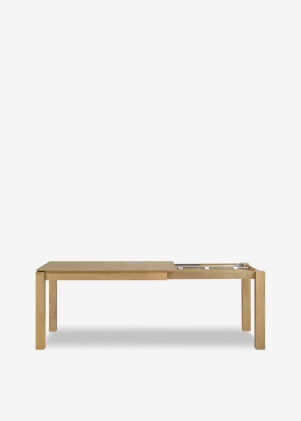 La table Slice en chêne massif dessinée par Alain van Havre est une pièce maîtresse de votre espace de vie. Une silhouette sublimée par des lignes massives et une construction solide et épurée lui donnent un caractère intemporel dont vous pourrez profiter pendant de nombreuses années. Cette table dispose d’une rallonge intégrée, facile à manipuler, qui permet de recevoir plus de convives, sans discontinuité apparente du motif du grain du bois.