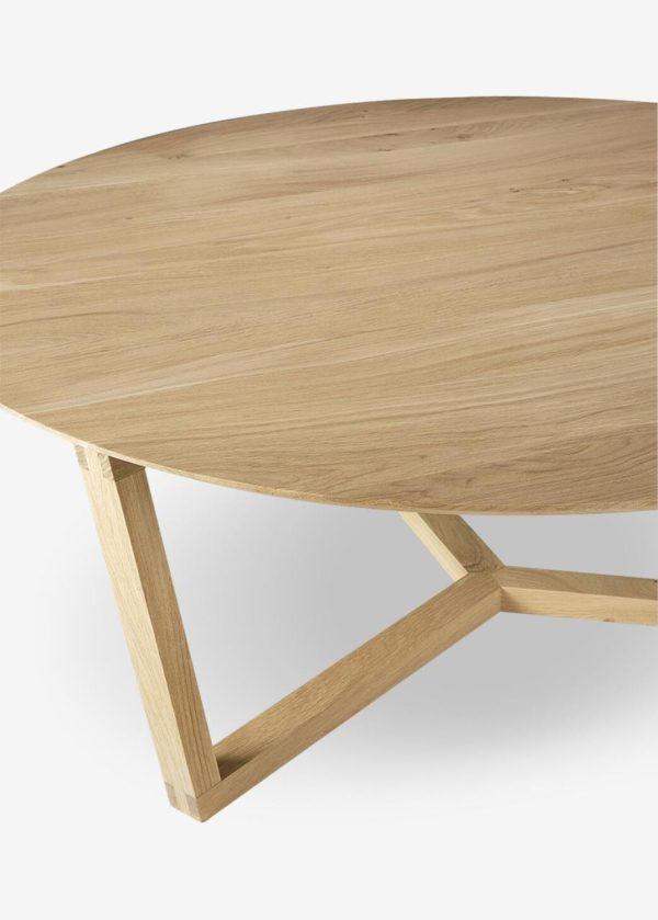 Cette table basse en chêne massif se caractérise par un piètement dont les trois éléments se rejoignent au sol. Avec sa ligne géométrique, elle s’intègre dans un salon au style contemporain affirmé. Dans un souci de beauté authentique, le bois sélectionné au sein de forêts européennes peut contenir des noeuds et des fissures naturelles qui font de chaque meuble une pièce unique.