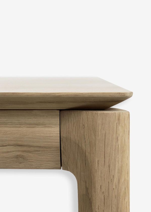 Avec la collection de tables Bok, le designer Alain van Havre signe une série de tables en chêne massif dont le détail du plateau légèrement décalé fait la particularité. La forme aérienne emblématique et la construction solide de la gamme Bok en font un design intemporel dont vous pourrez profiter pendant de nombreuses années dans votre salle à manger ou votre cuisine. Les chaises de la collection Bok se marient à la perfection avec cette table. Dans un souci de beauté authentique, le bois sélectionné au sein de forêts européennes peut contenir des noeuds et des fissures naturelles qui font de chaque meuble une pièce unique. Disponible en plusieurs tailles.