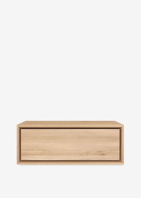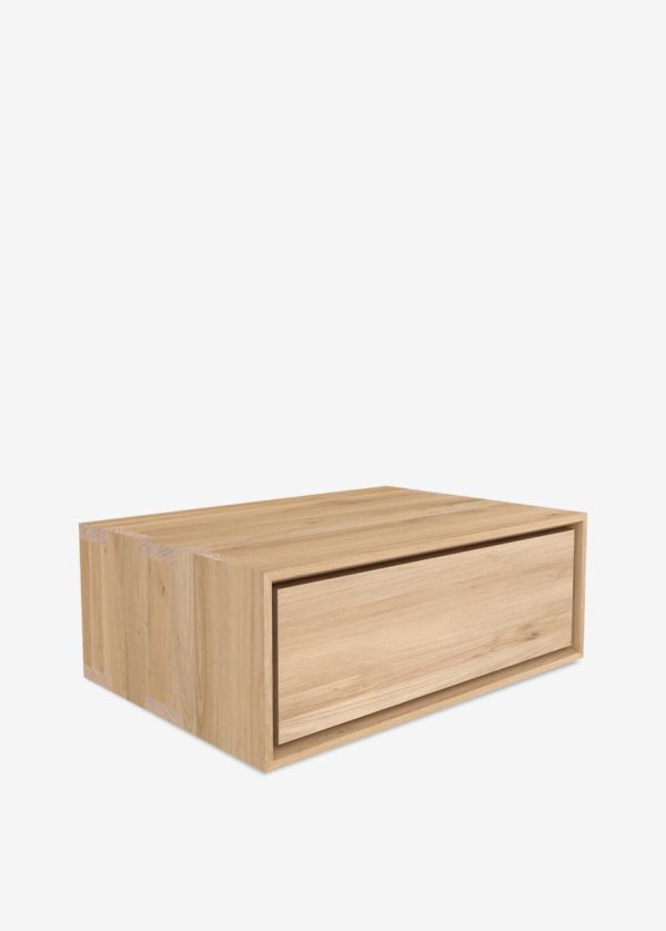 Cette table de chevet a été conçue pour accompagner le lit Nordic II. Dans un style épuré et minimaliste, elle se place au mur et évite tout encombrement au sol. Dans un souci de beauté authentique, le bois sélectionné au sein de forêts européennes peut contenir des noeuds et des fissures naturelles qui font de chaque meuble une pièce unique.