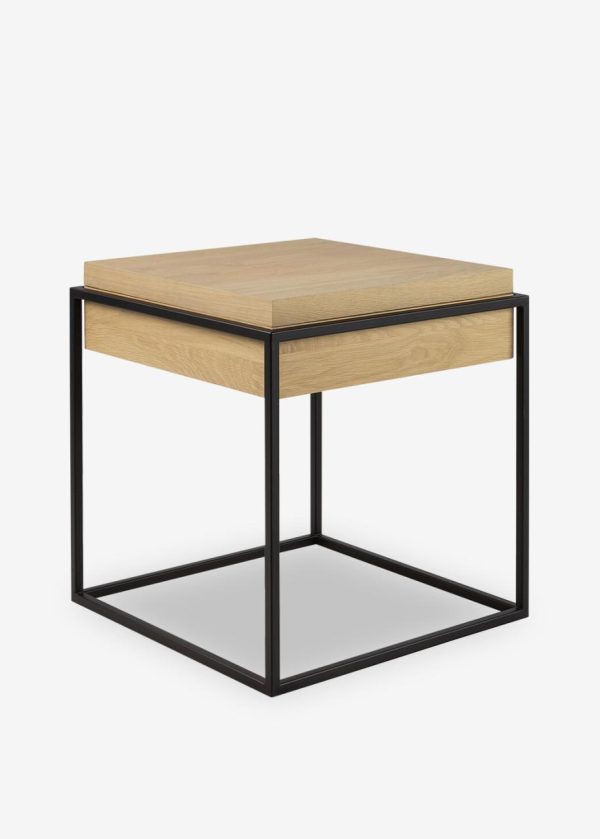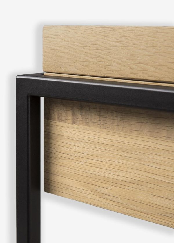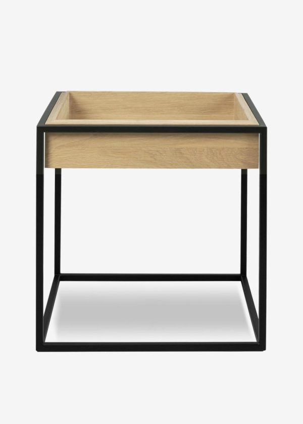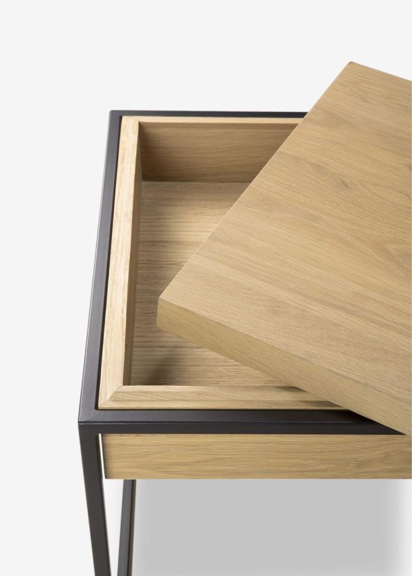 Issu de la collection Monolit imaginée par Sascha Sartory dans un style très épuré, ce bout de canapé se compose d’un corps en chêne massif inséré dans un cadre graphique et aérien en métal noir. Dans un souci de beauté authentique, le bois sélectionné au sein de forêts européennes peut contenir des noeuds et des fissures naturelles qui font de chaque meuble une pièce unique. La collection Monolit se décline en plusieurs modèles.